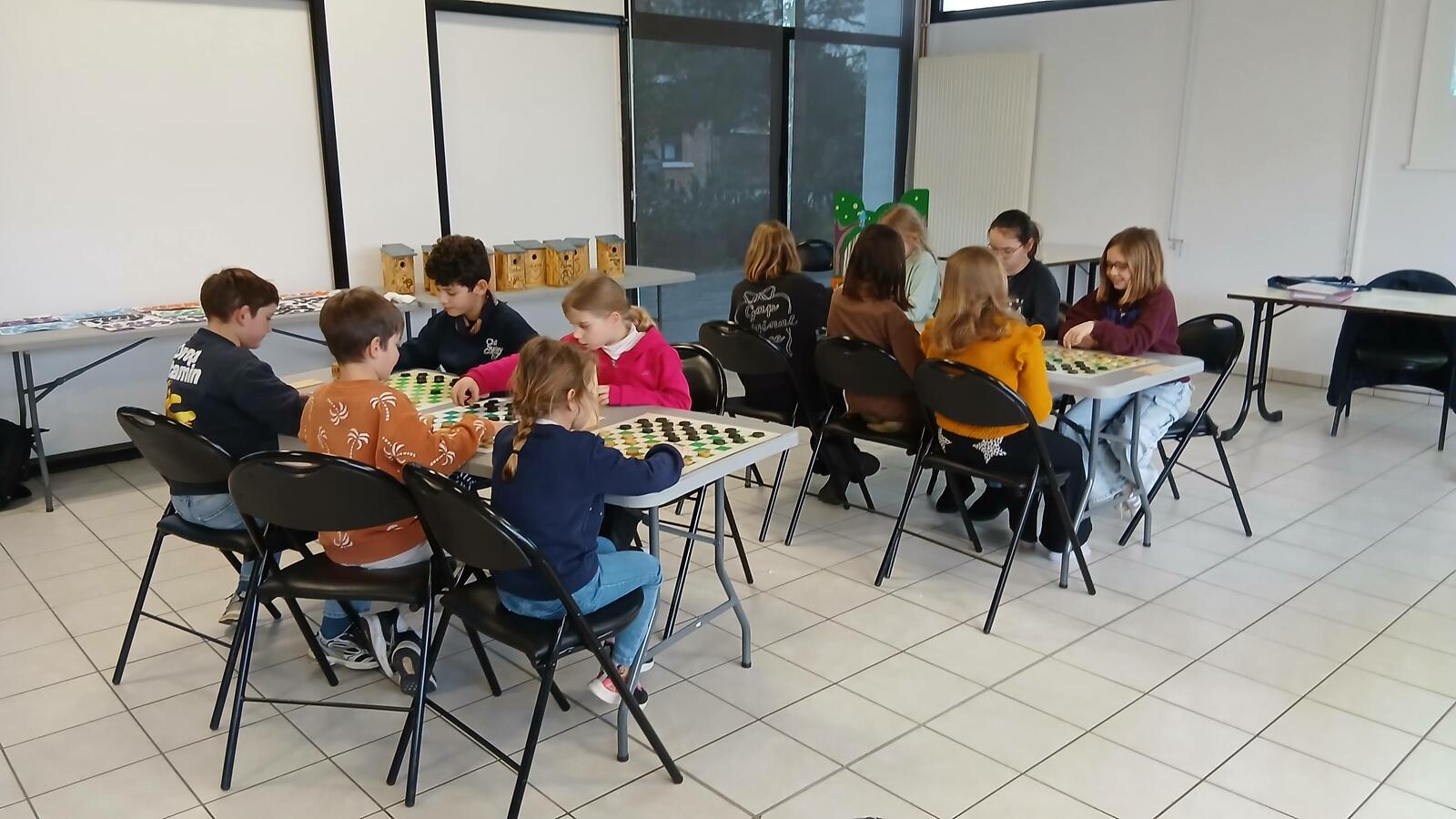 En vue de cet atelier , les animatrices ont fait faire des damiers aux enfants . Chaque enfant est reparti avec son damier .